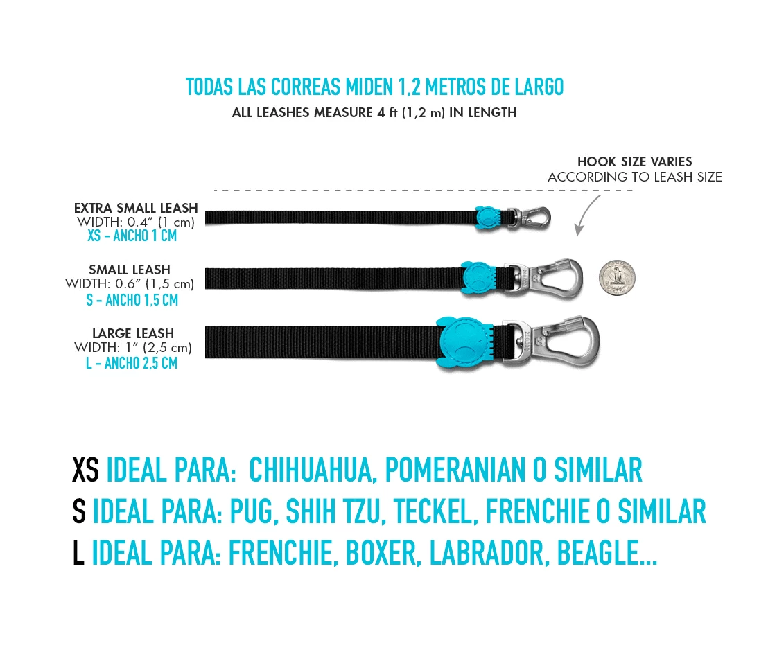 Made of soft and durable polyester, the Neon Coral dog leash is super soft on the hands and comes with our iconic rubber skull logo that protects the stitching. The super hook locks for an effortless and safe walking experience.